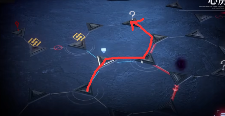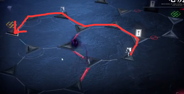 然后要去右边的问号,但是这里需要注意黑影的位置,如果黑影马上要走过来了就往回走一步刷一下黑影的位置。