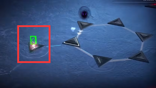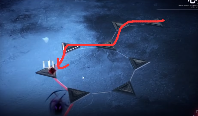 可以看到前面有两个黑影,一个会顺着标红的路径来回移动,另外一个和九十九那关一样,直接踩上去就完事能被踩掉。