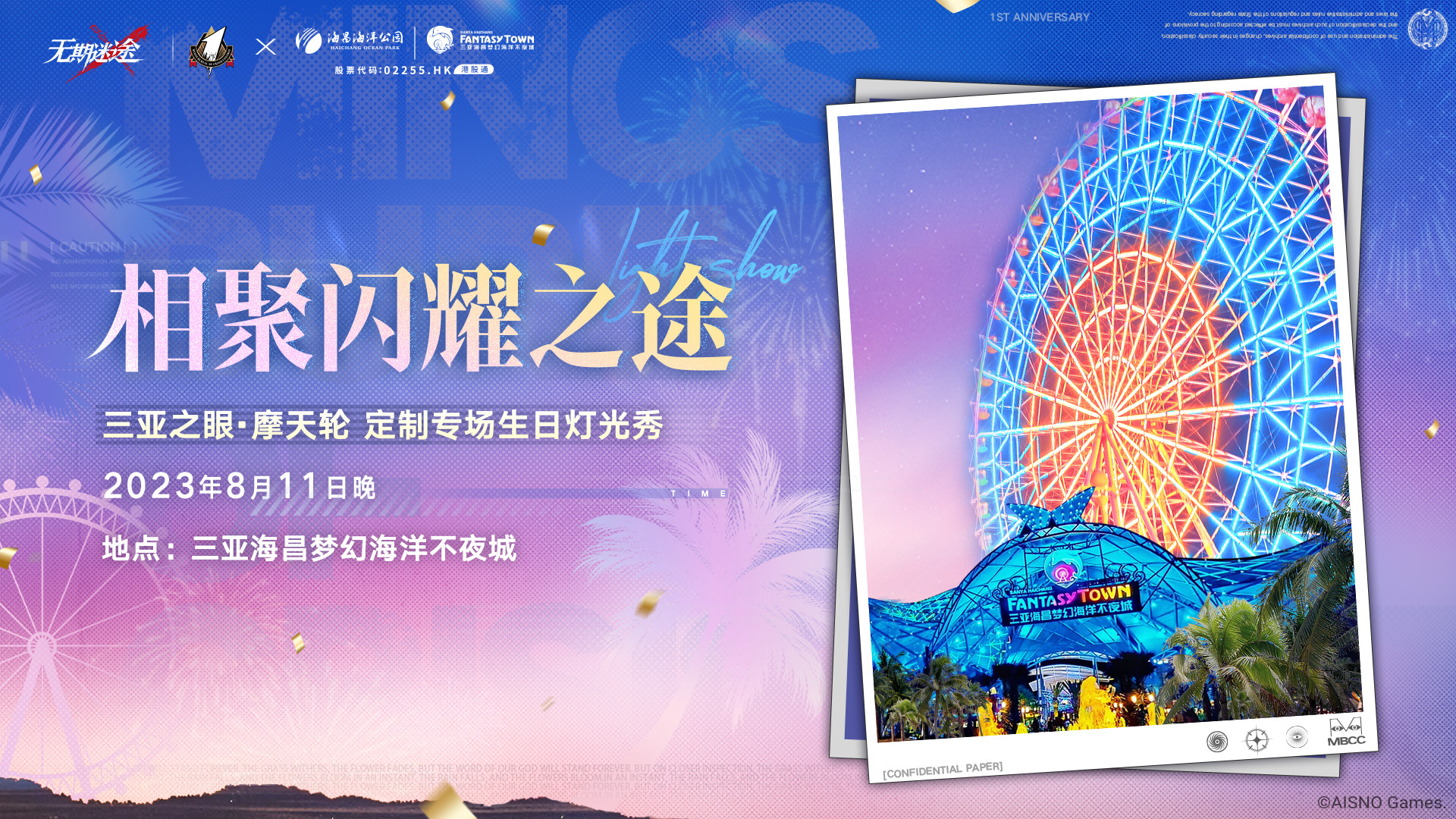 9、《无期迷途》x三亚海昌梦幻海洋不夜城,8月11日三亚之眼摩天轮定制专场生日灯光秀: