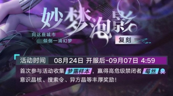 妙梦泡影活动将在8月24日-9月7日04:59期间复刻。