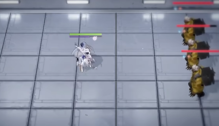 首先是她的被动技能。小伙伴们可以看到出现在场上的敌人,当在面对格芮芙的时候,头顶上都会出现一个蓝点,目前开发者还没有具体明确这个蓝点具体起到什么作用,不过根据以往的技改来推测,有可能是在打破这个蓝点之后,能够获得暴击率和暴击伤害方面的提升。其次就是格芮芙的普攻,她的普攻是范围性的伤害,施展之后将会向前方3×4的范围内的敌人发起群体攻击,并且伤害还是较为可观的。