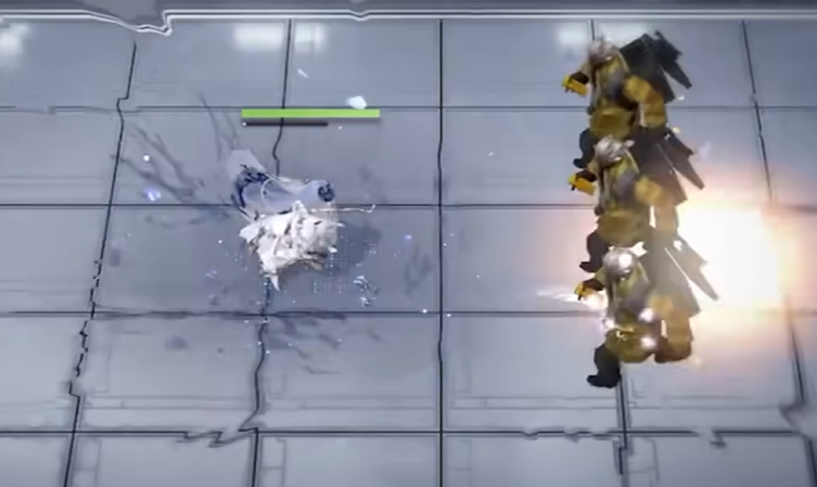 最后就是格芮芙的大招。格芮芙在施展大招之后,将会向前方九宫格的范围内发起远程攻击,同时还带有破核效果。因此可以看出,在战斗时格芮芙这个角色是比较适合放在队伍后排的,毕竟她的手还算是比较长。