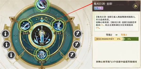 璀璨回响--效忠公义:【极光巨剑·旧影】聚拢敌人片刻后发生爆炸,造成42%攻击力伤害。