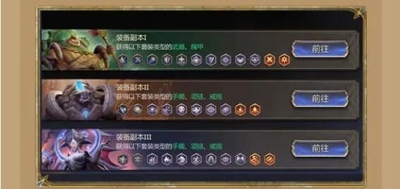 武器和胸甲可以通过装备副本1进行获取,手镯、项链和戒指可以通过装备副本II与装备副本I进行获取。