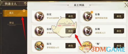 3、在快速寻人的列表页面,点击员工栏目,选择拉利,点击后面的前往。
