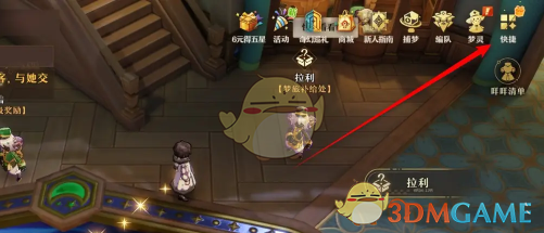 1、首先我们需要进入到游戏主界面,在右上角的位置点击快捷图标进入。