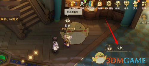 4、即可自动寻路来到NPC拉利的位置,点击交互键,和拉利对话。