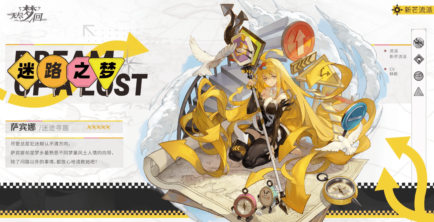 迷路之梦的名字叫做萨宾娜,属于新芒流派,她虽然总是迷迷糊糊找不到前进的道路,但却愿意不断在迷路中试错,是最熟悉梦巢不同风土人情的向导,除了问路以外的事情,都可以放心的交给她。