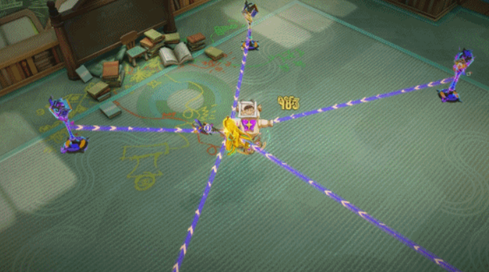 她的普攻“岔径星光”会发射出射线攻击敌人,同时召唤出离航路牌,一段时间后路牌小时,这个路牌与本体之间会形成一个相互连接的射线,如果敌人碰触到射线就会持续遭受到伤害。