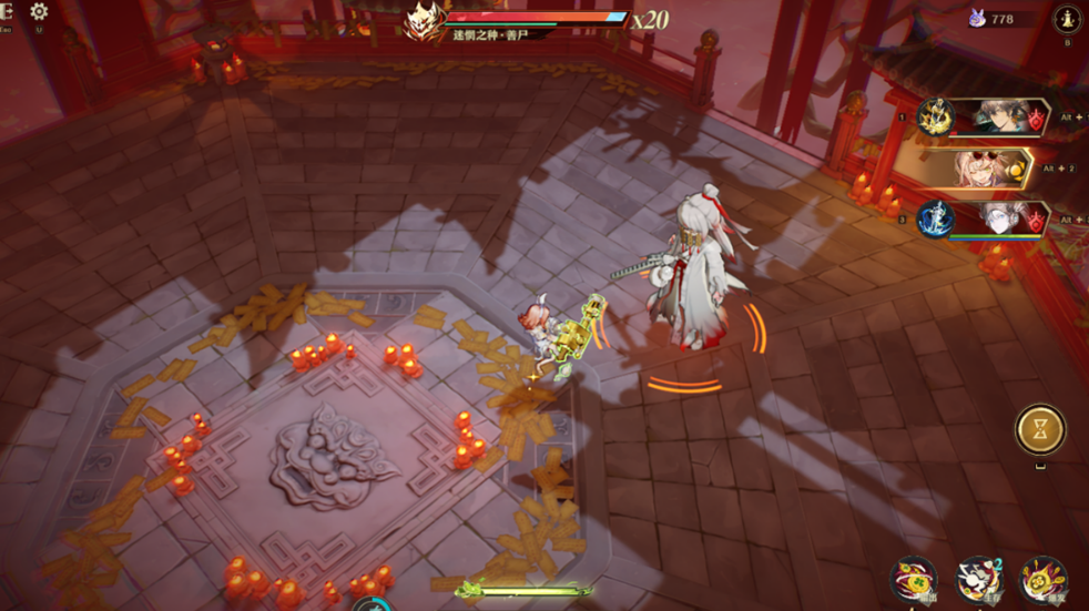 李火旺的普攻相当有特色,他能够操控“七星铜钱剑”进行四段连击。每次攻击还有一定几率召唤出悬空的铜钱剑在周围旋转,这些剑不仅看起来炫酷,而且一旦触碰到敌人,立刻变成飞剑射向目标,形成爆发性输出。普攻兼具颜值和实用性,打击感直接拉满。