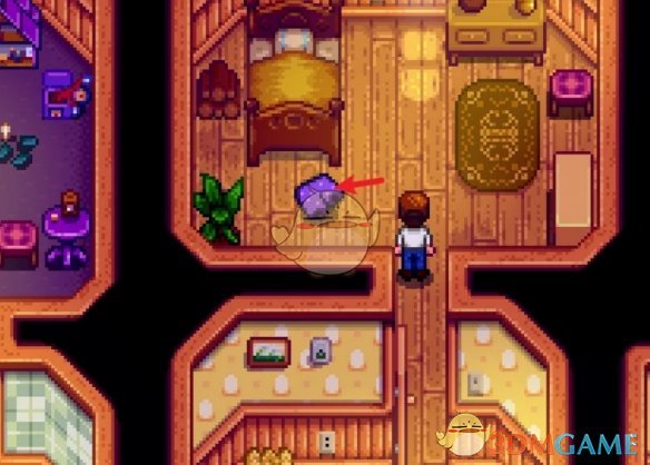 5、好感度到2时玩家可以进入玛妮的房间,在图中位置可以找到镇长的裤子。