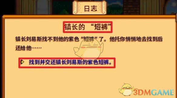 1、玩家打开日志,接取【镇长的短裤】任务。