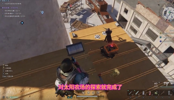 5、当看到圆形的建筑物时即可拾取装备箱,然后是武器干掉对面的狙击手