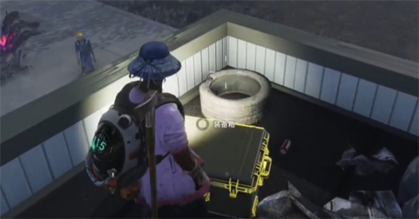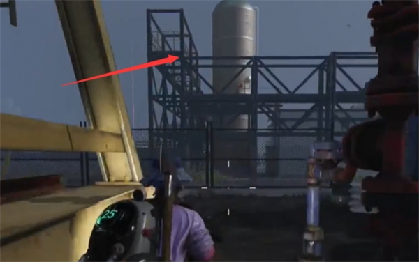 7、来到东侧管道和罐子这里,爬上顶端的平台,即可解锁战利品箱。