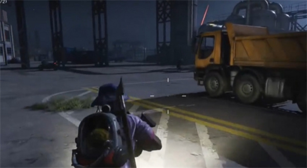 5、向南找到黄色卡车再左转,来到管道顶部获得武器箱。