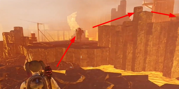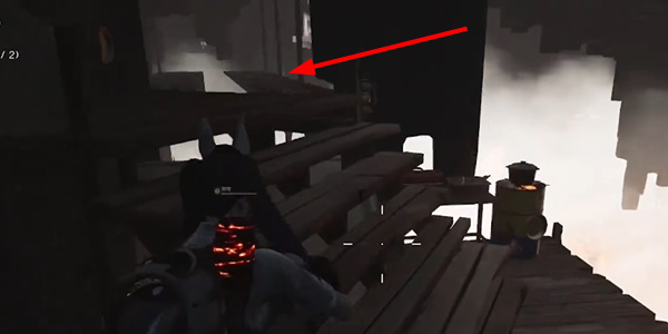 8、拿完箱子后,跳到围栏上往下看。这里有个空间锚点需要打开。