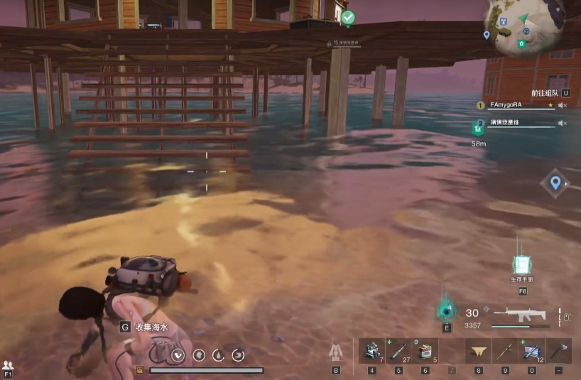 获得了水壶之后,可以直接将角色传送到海边,走到海水相对比较浅的区域,再使用水壶将海水装满,然后带回去就可以了。方法二也是使用道具来收集一定量的海水,借助的工具就是水囊。