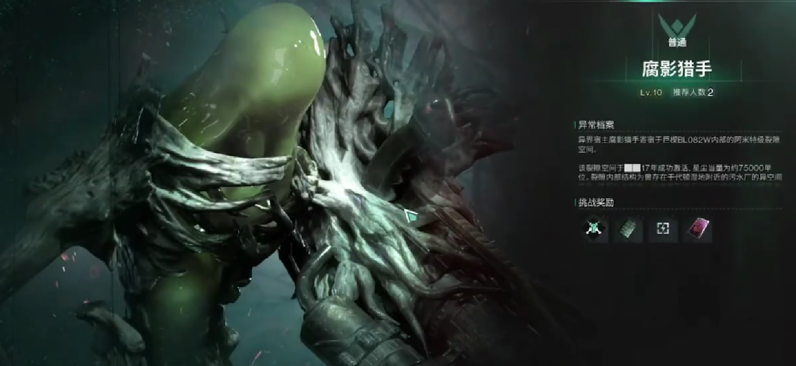 腐影猎手:在头部可以发射追踪导弹跟爆炸物,移动的轨迹呈现反物理扭曲的状态,玩家在跟它战斗的时候,需要借助场景掩护,并且要集中火力击破它的核心。