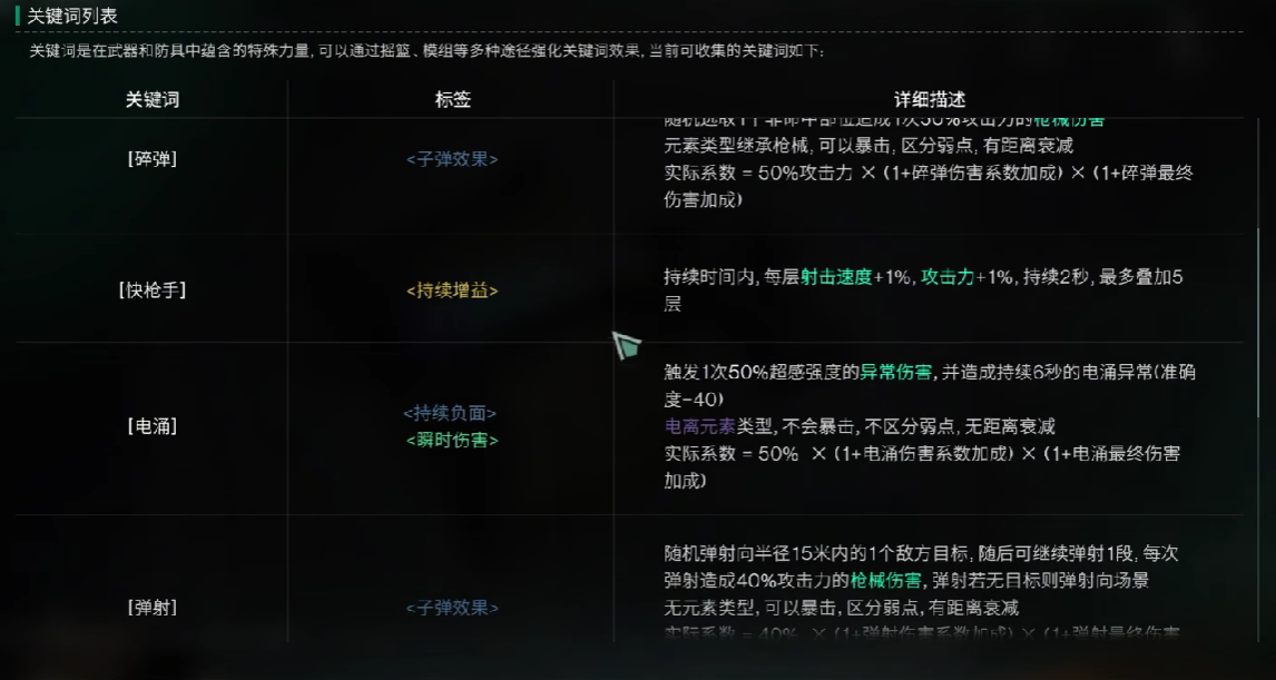 在游戏当中,存在有一个高攻击力的关键词效果,那就是电涌,电涌和爆弹效果是相同的,它的机制是在攻击时,能够触发连锁的电极反应,如若装配了“最后的希望”这一枪械,玩家还能够对敌人目标造成麻痹效果。