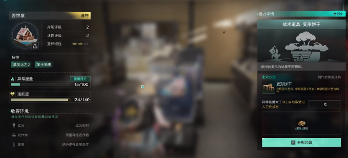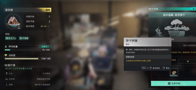 姜饼屋一旦在被收容之后,自然就会产出很多的碎饼干屑。这些素材在供应台上也能通过合成,然后全部变成饼干。饼干在使用之后就可以直接变形成和家具一样的模样。在变形的过程中,只要没有和怪物攻击,那么怪物也不会去主动的攻击玩家。