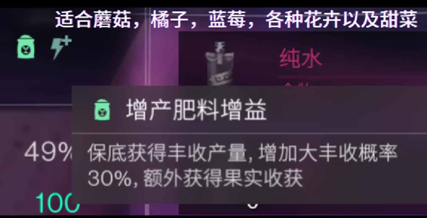 玩家获得了变异肥料,也可以将配方进行优化,从原先的一份星尘源质提高到三份,这时候农作物的成熟时间将会压缩到4个小时,不过玩家要注意配合防辐射面罩。除了变异肥料之外,玩家在选择污染农田的时候,可以选择铁锈河等辐射值150以上的地区,在这里搭建农田,选择变异甜菜和变异椰子。