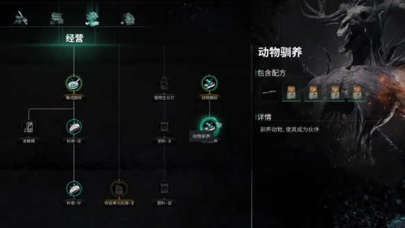 首先,启动驯养功能的前提是解锁“畜牧养殖”科技模块,该模块包括麻醉飞针与动物饲料的制作配方。麻醉飞针的制作依赖于轻工具台,材料要求为四阶资源,说明其适用于游戏中期及以后阶段,具备一定门槛。而动物饲料则需在电炉灶中根据动物品种进行差异化配方调配,兔类偏好蔬菜与谷物,肉食性动物如狼和熊则需提供高蛋白饲料,甚至可能要求混合型食材才能满足驯养需求。