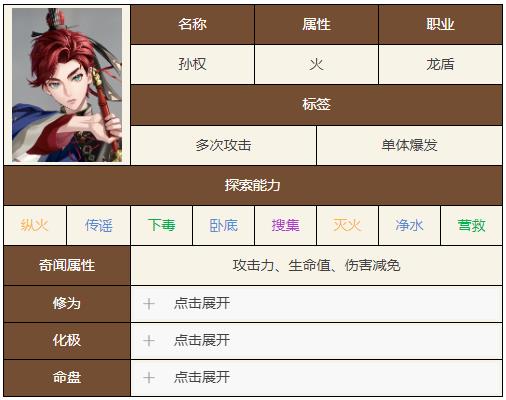 《如鸢》孙权是一位火属性的龙盾角色,有着不错的单体爆发能力,能够通过被动获得优秀的多段伤害,但很多玩家都不知道如鸢孙权技能是什么,下面小编就给玩家们带来了如鸢孙权的技能天赋介绍。