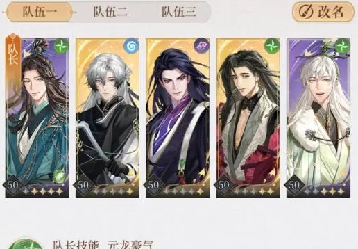 1、推荐阵容:陈登(队长)+王粲+贾诩+郭嘉+史子眇。