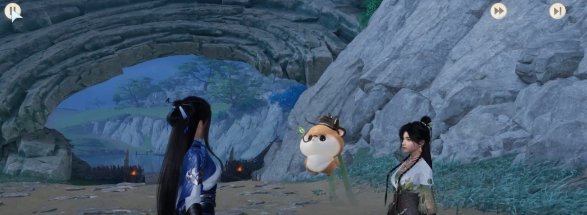 8、易殊告知阴鱼阵眼后,与凌波、林月如一同来到崖壁,完成解谜和战斗。