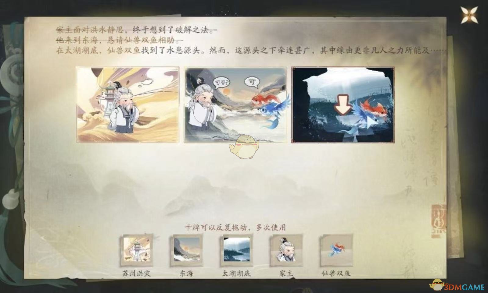 最后还有一个玩法是我最喜欢的,就是拖动卡片迷局,这个玩法贯穿了整个任务,玩家一共会玩几次,每次都会给你不同的卡片,你的任务就是根据文字叙述的易家真相来配图和人物,我觉得这个玩法很有趣,因为它能在你玩的同时让你逐步知道易家被灭的真相,这种跟看柯南和包青天有异曲同工之妙,在迷雾面前一步步抽丝剥茧最后得到真想,真有一股茅塞顿开的舒爽感!