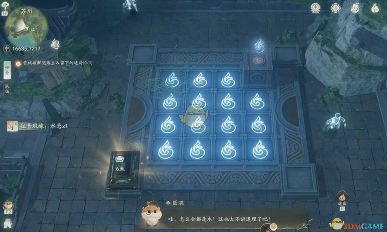 接着就来盘点一下这个任务出现过的玩法,首先就是五灵对弈迷局,一个骰子有六个面,每个面都是不同的元素刻印,而要破除迷局的方法就是用元素刻印停留在对应的棋格之上,这个玩法还是挺有意思的,需要不断移动骰子的元素面,然后还有提前几个格子预想方案,这样才能刚好把元素刻印对上去,并且这个玩法我一开始一位只要对一个面就行,没想到过了之后还有第二关要对四个面,属实是玩爽了。