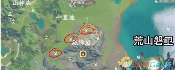 总共有6个不一样的刷新点,例如在刘华池这边有三个点位,司辰集上方小岛有一个点位,西幽台附近还有一个点位,稻香里的左边还有一个点位。