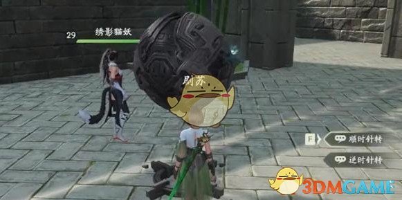 3、进去之后会有两个石球,先顺时针旋转三下第一个石球。