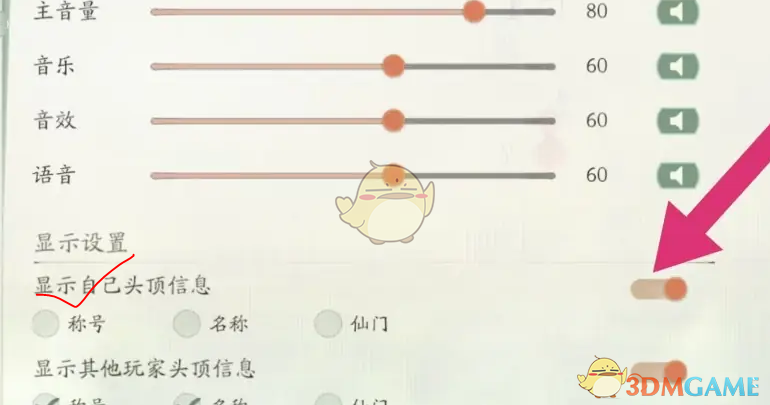 答:在基础设置页面下,开启显示头顶信息功能即可