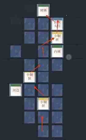 4、树林2:小铜匣(红)-工具箱(红)-流寇(红)-洞穴(红)-小铜匣(紫)-内城