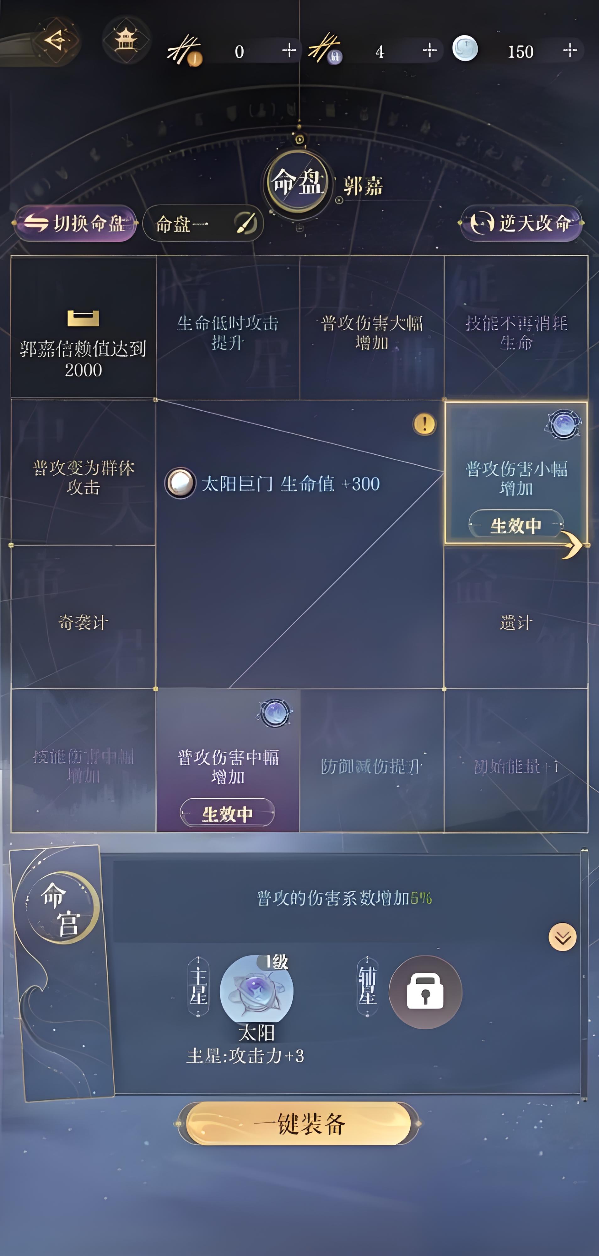 如鸢听取玩家意见加强了很多老密探,玩家不必强求王粲了。郭嘉前期技能厉害好上手,属性是风属性的诡道密探,他的群攻能力很强大。释放普攻可以解析队友普攻同时降低敌人普攻,免伤可叠加30层,但用技能打该敌人会清除。他的命盘中有一个奇袭计,队伍全体第一次放技能视为普攻,然后叠加普攻减伤,之后放一波技能带走敌人。还有可以普攻变群体的盘,以及死亡提升队友增伤,根据需求选择就好。