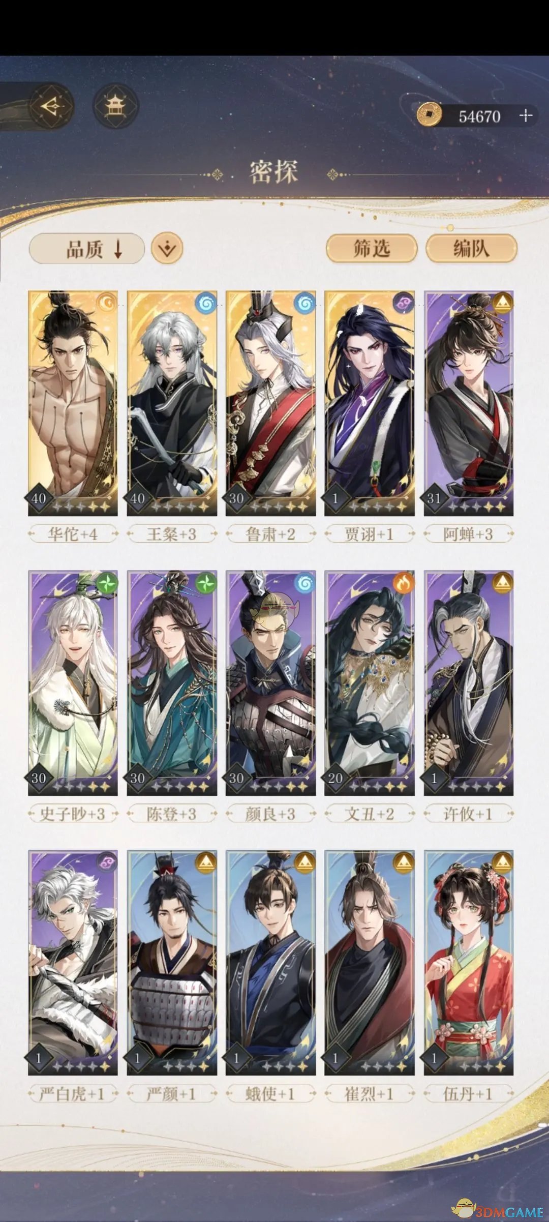 9、配队推荐:盾(颜良,严白虎,王粲,郭姐)+输出(主c例如鲁肃,杨修,陆逊,吕蒙)+副c(一般推荐阿婵,可以养到60级)+奶妈(华佗,狮子喵(史子眇))+打火机(陈登)