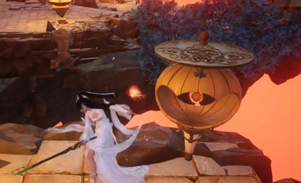 前往前方的悬崖处,与桥边的桥墩进行交互,即可修复这座断桥。过桥之后打败对面出现的小怪,并领取出现在附近的火星力。接下来玩家们顺着前面的道路一直往前走,并且重复以上的这个步骤即可,在重复三次之后,火星力就收集完成了。接下来原路返回,顺着小怪出现的方向前行,并且引入了击败小怪,就可以成功地收集火之源灵。