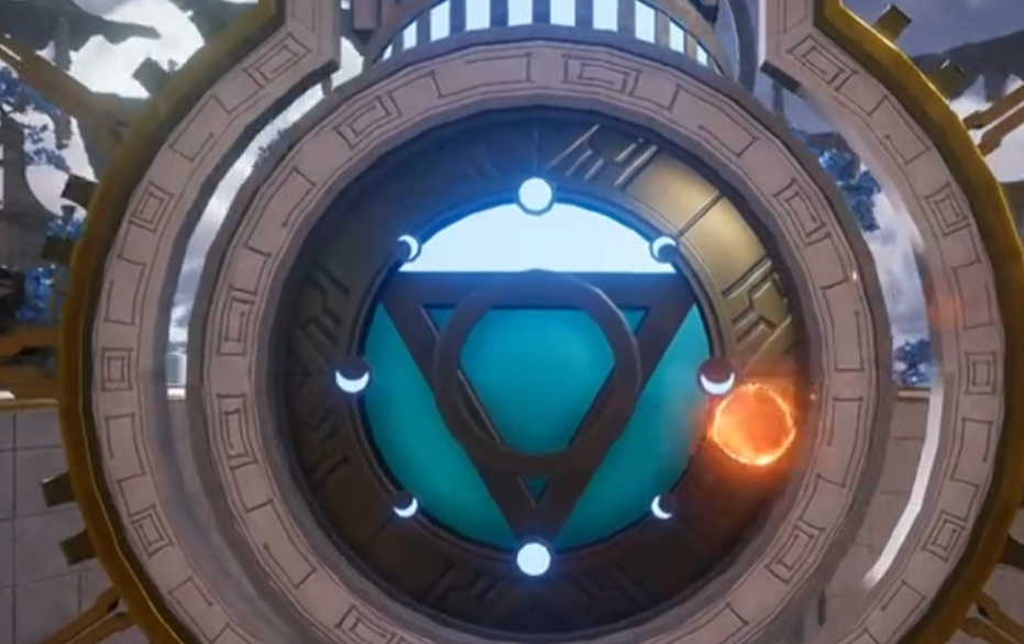 在进入任务场景之后,小伙伴们可以看到左边的房子里面有一个很大的骰子,交互之后就可以把这个骰子给拿出来,来到面前的台子上,看一下台子上的图案是什么,然后将骰子上的图案与台子上的图案对准再放入。此时水门和火门都会打开,大家需要先进入火门,可以看到面前有一个星台,与这个星台交互,可以往其中注入灵力。