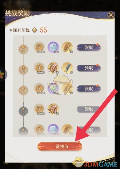 3、最后在挑战层数中,点胶机一键领取即可领取挑战奖励;