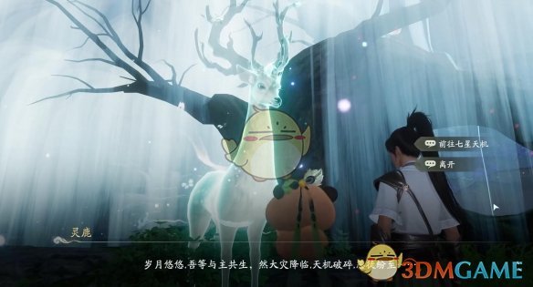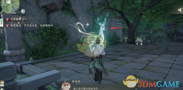 1、前往【凝思湖】对话【灵鹿】前往七星天机,启动右边的柱子;