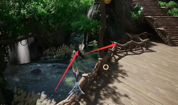 9、从旁边河里跳下去右转看到仙灵,跟随仙灵走就能够拿到【宝箱】。