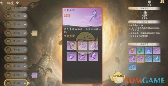套装来源:副本-历练-多人副本·玄一幻境-第20-100层(其中20-29可掉落蓝/紫品质,30-49可掉落紫/金品质,50-100可掉落金/红品质)。