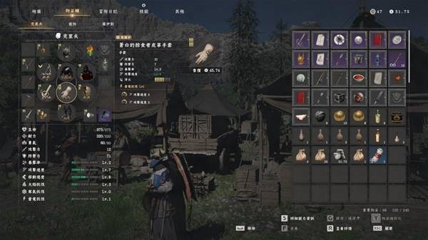 坚韧皮革到我底下十字线那个位置附近,会有几只鳄鱼还有白色传说鳄鱼,杀了可以顺便解任务+拿手套,小心人在水里不要给鳄鱼咬到一次死,除了传说鳄鱼其他飞传点可以刷新,剩下材料就简简单单的了。