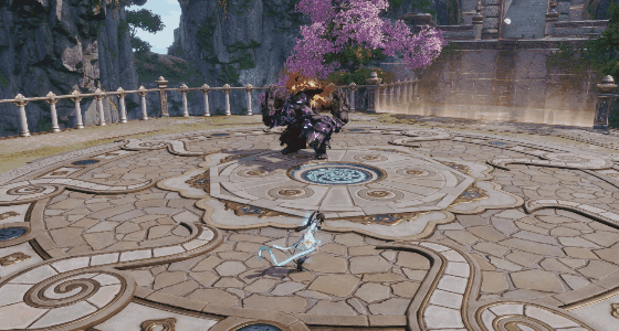 此刻千万别再贴脸输出,注意看地面黄圈,位移躲开火球投掷区域。