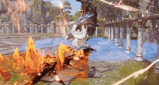老龚进入最后狂暴状态,它会抡出威力巨大的直线火浪,地面瞬间炸开熔岩裂缝。务必注意及时闪避。