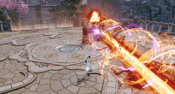 直线焰火"危"的第二段是火焰球攻击,老龚持续释放火焰旋风,火焰裹挟着巨大的旋风,命中后不止要承受高额伤害,还会被强大的冲击力眩晕。