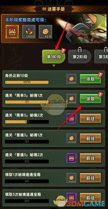 迷雾大陆迷雾手册阶段奖励怎么领取?