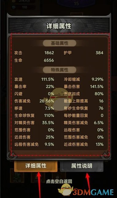 答:在个人主页点击左侧的详细属性,即可查看角色的属性