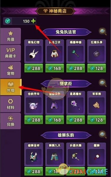 2、接着在神秘商店内,点击外观,继续点击时装币选项;